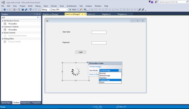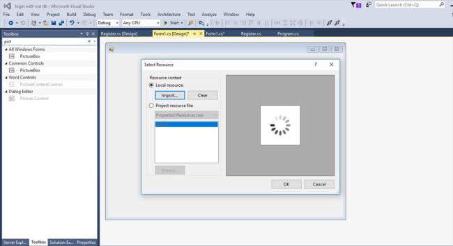 In Toolbox, we have to add Picture Box and click the Picture Box tasks to choose the image.