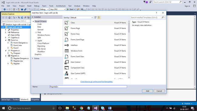 Click View->Select Toolbox. We are using the Toolbox to design the Form in Window Application.
