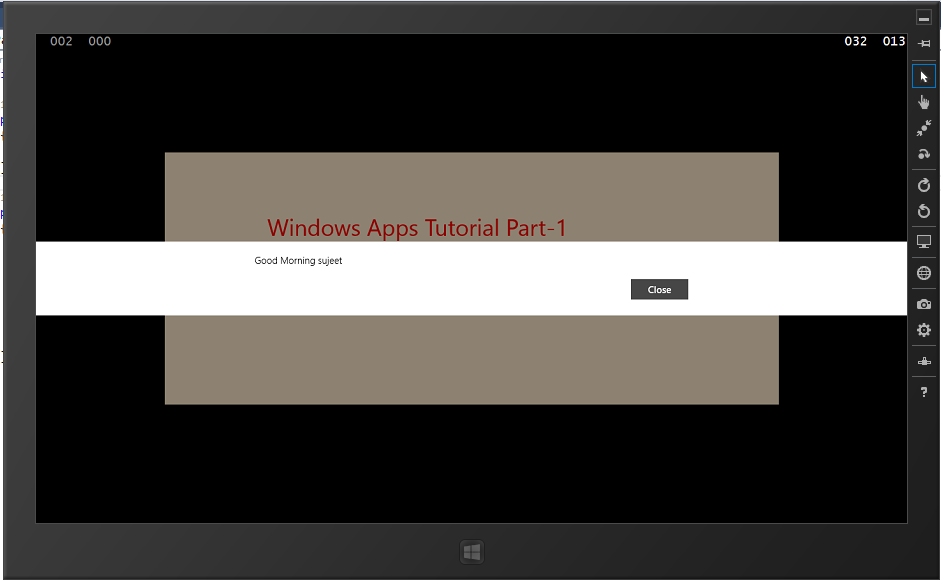 In this way, we can check the app in the simulator. This tutorial is basic, as far as Windows store apps are concerned. I hope this will help you.