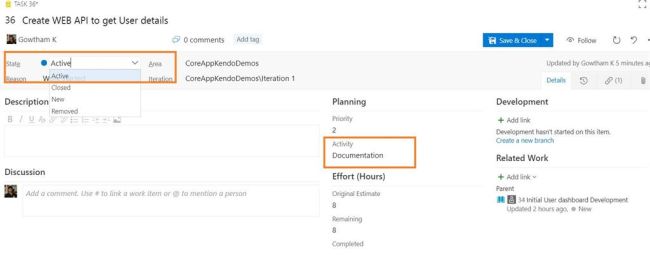 I need to set my activity of the work item to documentation whenever the work item is moved from "New" to "Active" state. This process can be automated using the rule.