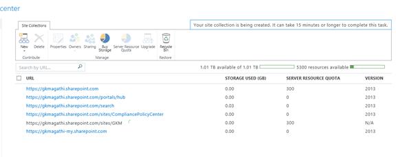 Click new icon in the Sitecollections Tab and choose the below Private SiteCollection