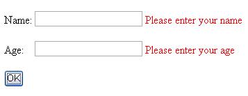 <asp:RequiredFieldValidator id="RequiredFieldValidator2" runat="server" ErrorMessage="Please enter your age" ControlToValidate="TextBox2"></asp:RequiredFieldValidator>