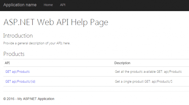 Now please run your application and go to the help page. You can see the API help page as follows.