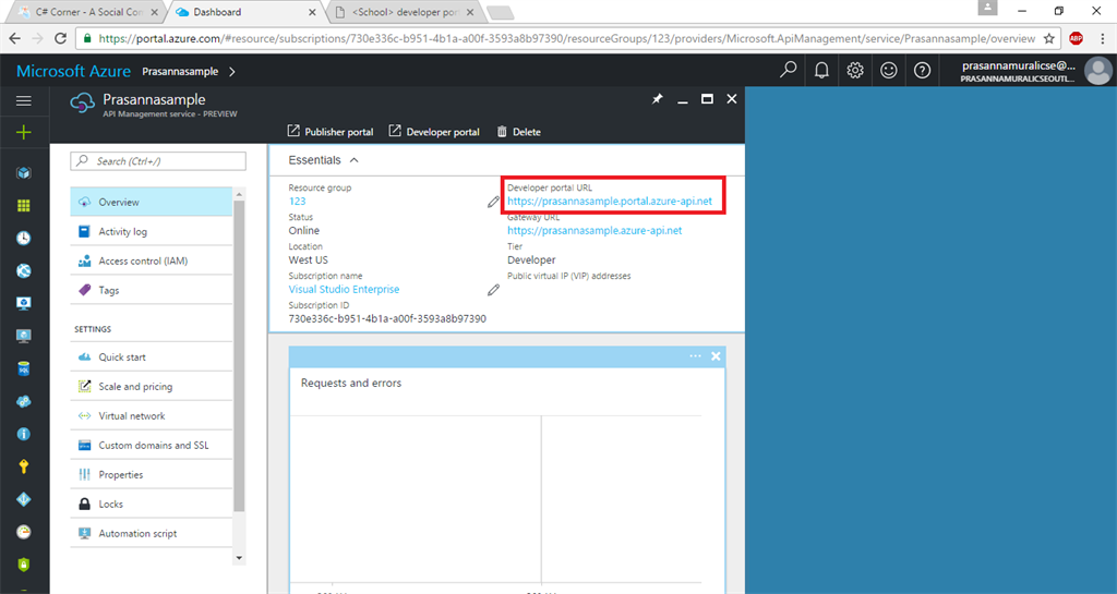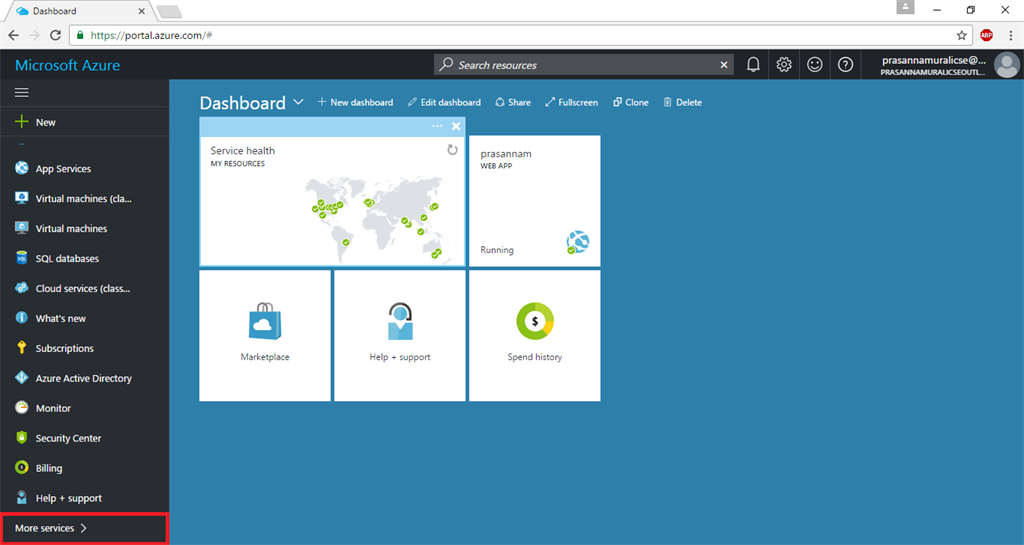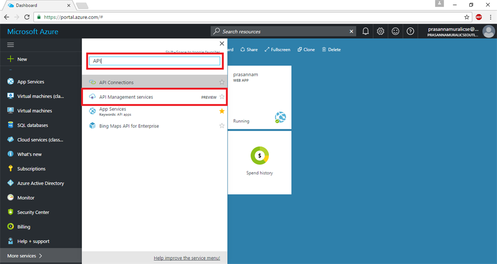 Once the dashboard appears, now it’s time to create API management account in Azure portal. Click browse option.
