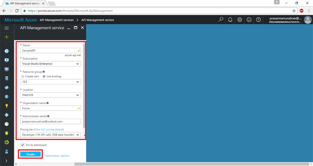 Subsequently, fill in all the mandatory fields to create an API management account.
