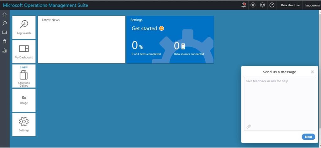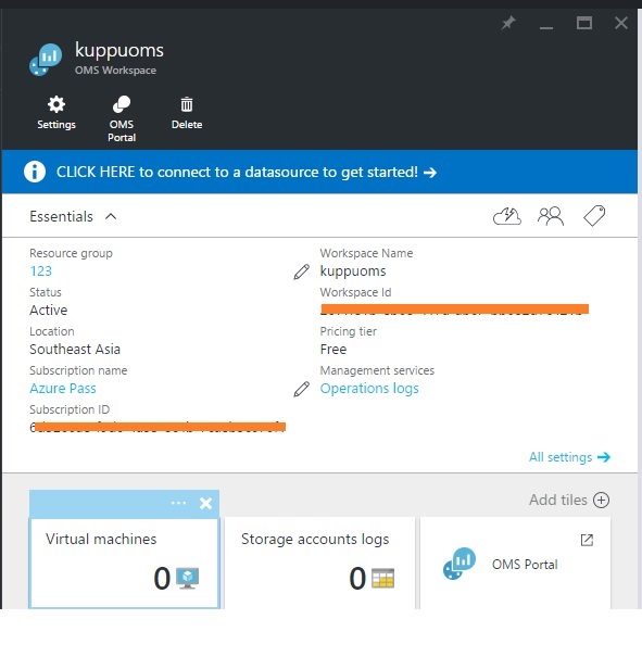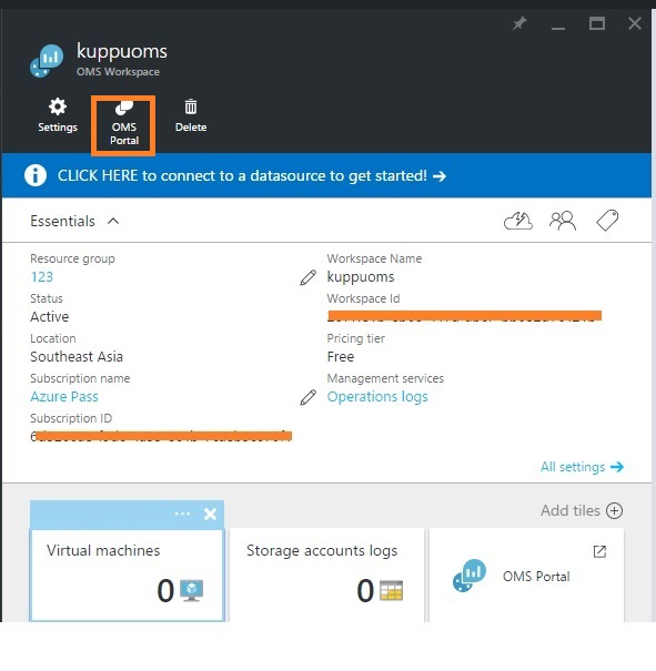 Click the OMS Portal link to open the Operations Management Suite Website with our new workspace.