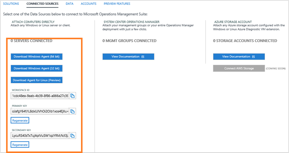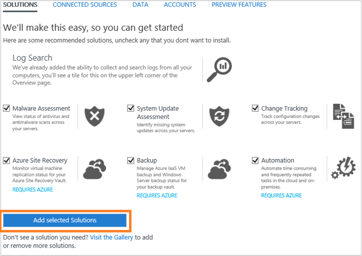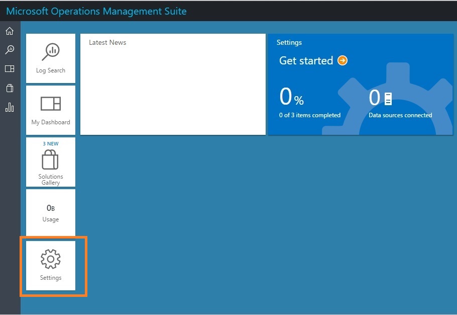 To choose solutions and connect the Servers we need to manage, click the Settings tile and follow the steps in the section, given below: