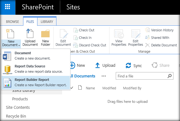 In this article, we will see how to get started with SSRS reporting using SharePoint List data in integrated ode. Spin up the report builder by going to the Report Library.