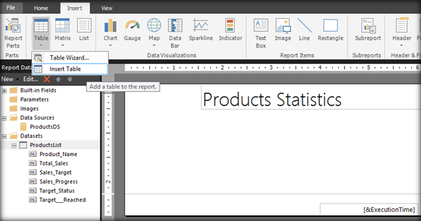 We have multiple options to display the business intelligence report. Here we will use a simple table to display the data.