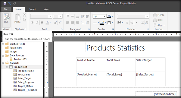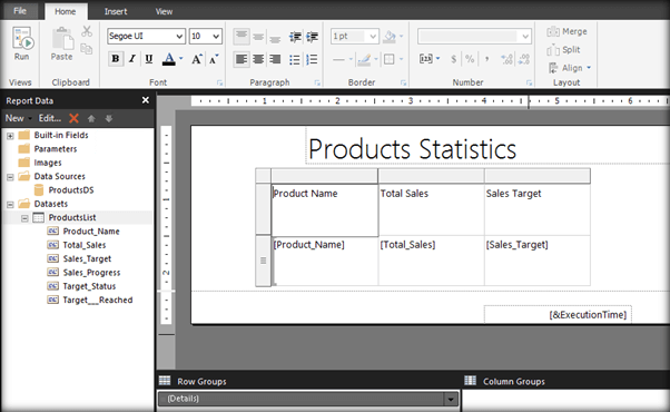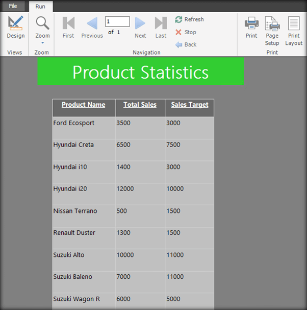 Report builder provides options to set the font, background colour, and offers other styling methods. We can add a bit of cosmetic changes to the report, as shown below: