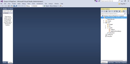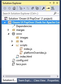Follow the steps, mentioned below, to build an Onsen UI with PopOver, using Onsen UI Framework, using Visual Studio 2015.