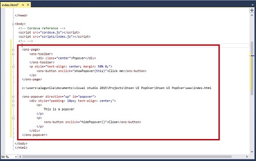 Let’s see how to start building the app, using PopOver in Onsen UI Framework, using Visual Studio 2015.