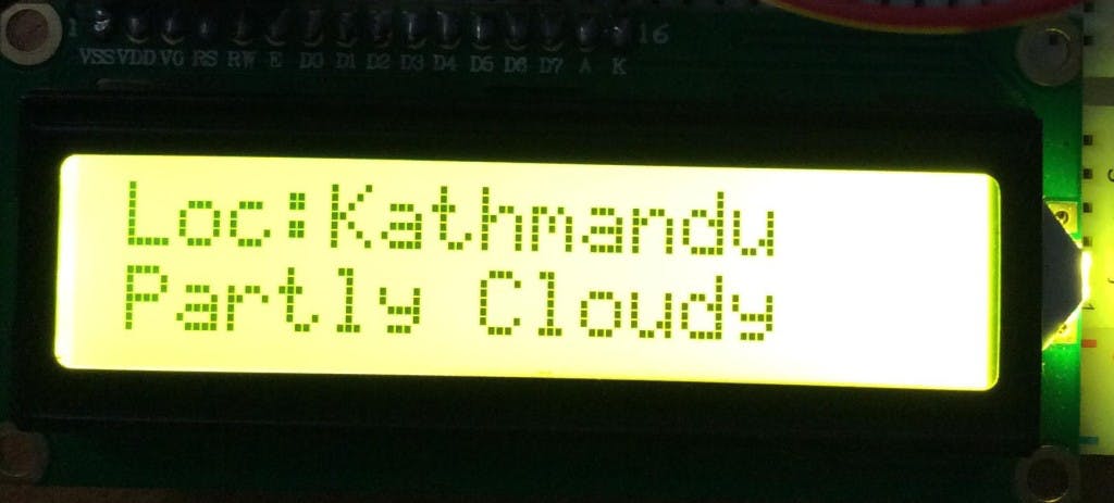 In the above tutorial, we saw how to display the custom message on 16 X 2 LCD using raspberry pi and python.Now we shall move on how to display the current weather info on LCD: