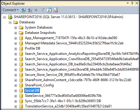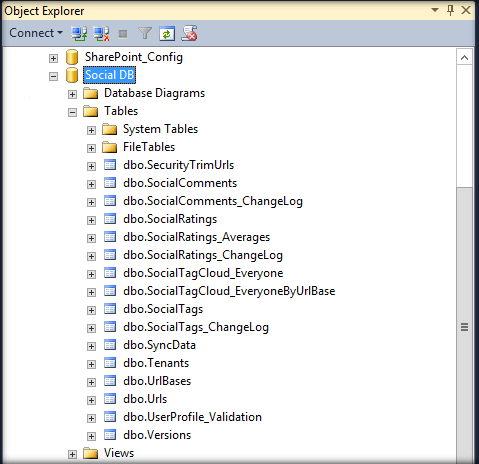 We can see the Social DB from the SQL Server Management Studio. All the social features of SharePoint are stored in the Social database.