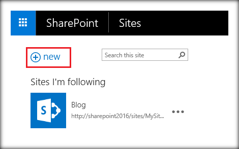 The ‘new’ button has come up in ‘My Sites’. Click on it.