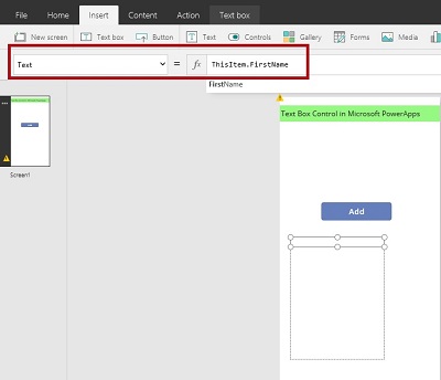 Now, Select the first item in the Text gallery and add the ThisItem.FirstName to Text Property