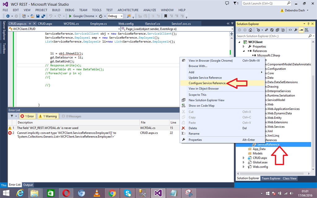 Here, I have created a WCF service and now I will consume this service in my client application. For consuming this application I did the following.