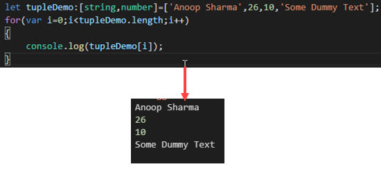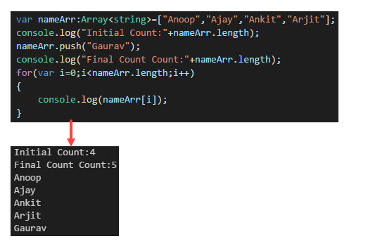 Array type is defined by the name of the type followed by a pair of square brackets (i.e. shorthand method) or by using generic type (specify the type in angular brackets of an array i.e. longhand method. Ex Array<String>). We can get the items of an array by iterating a loop on its length.
