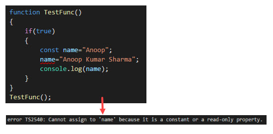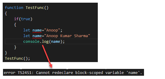 In the example given below, we got an error, which states we cannot redeclare block-scoped variable.