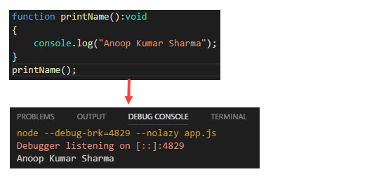 Typescript also provides three types (void, undefined, null), which are not used as type annotation, but used in case of absence of values. Void type is used only for the functions, which do not return a value.