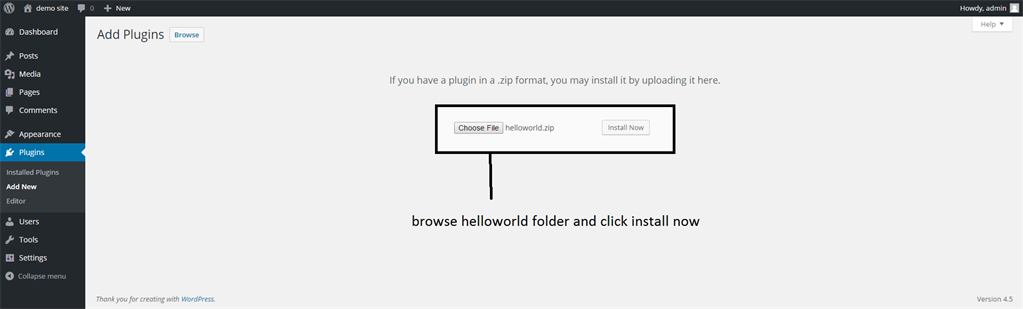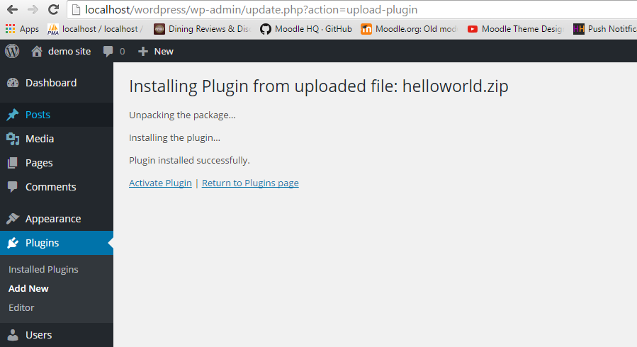 In this article we will discuss how to install Wordpress and move further in starting with creating a demo plugin. Here, we will not code our plugin, just add small descriptive information to our plugin.