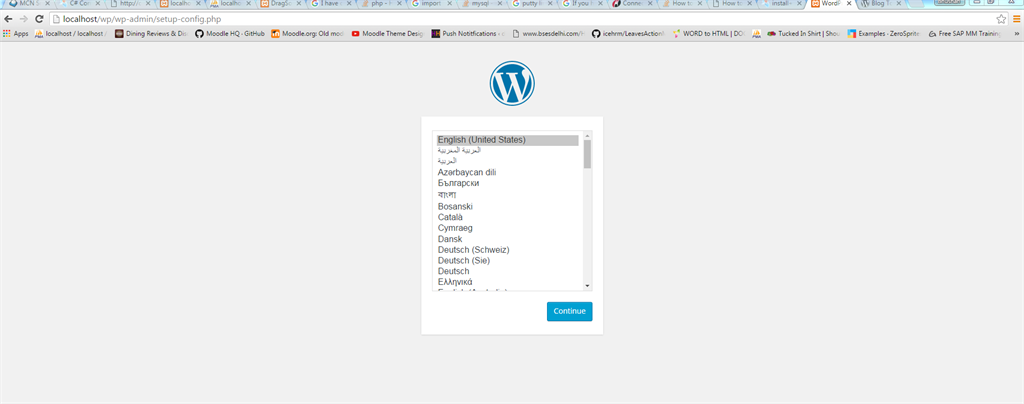 3. Run this folder into your server like xampp and wamp etc shows fist screen during the installation of wordpress,