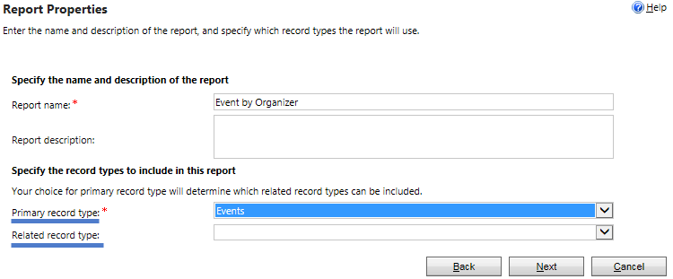 We have one custom entity event, which stores the details about the events, like event budget, event organizer, primary contact, event city and date. We want to write a report, which should display the events group, by an event organizer.