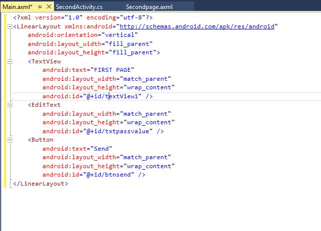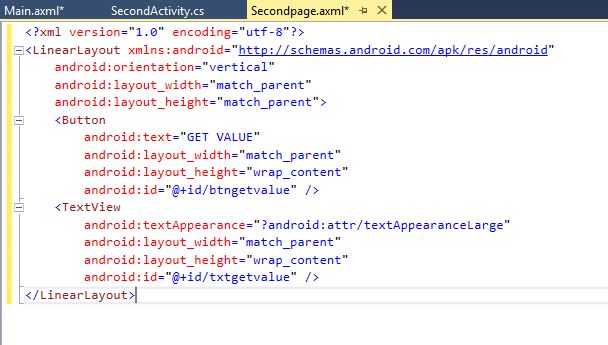 - SetContentView(Resource.Layout.Secondpage);