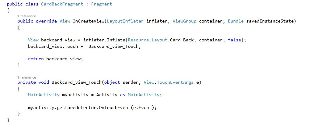 - private void Backcard_view_Touch(object sender, View.TouchEventArgs e) {