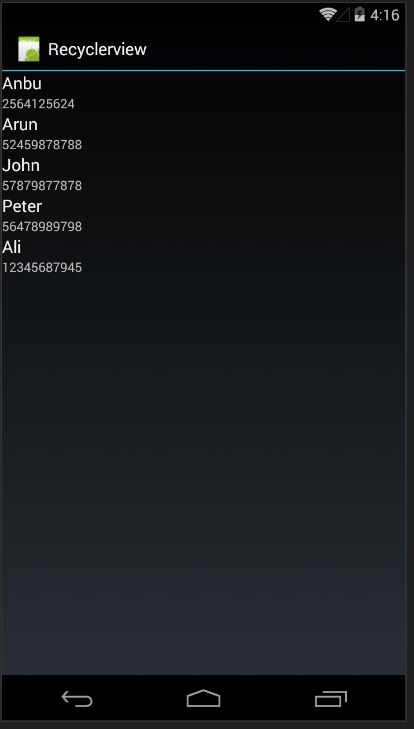 The Recycler View is used to display a group of messages, songs, images (Ex: Inbox, music player, Gallery). For more details, Click.