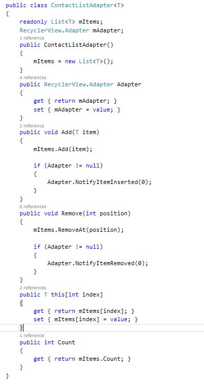 - public RecyclerAdapter(ContactListAdapter < ContactList > Mitems) {