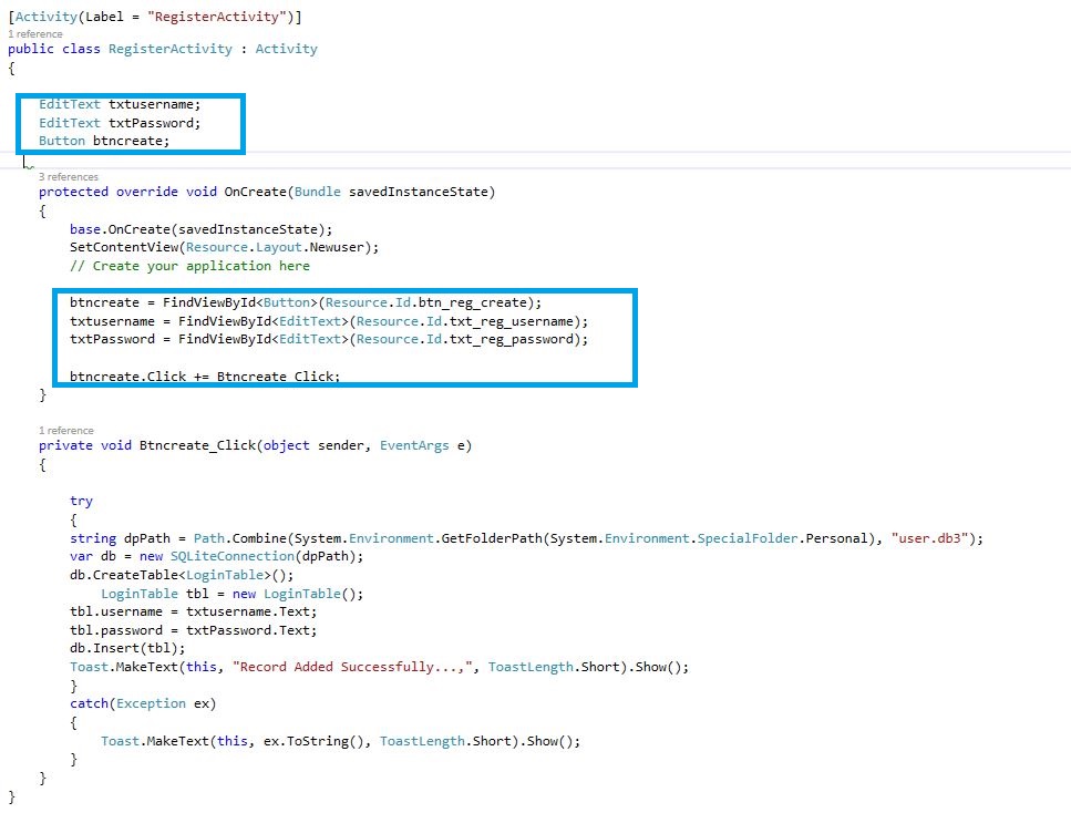- btncreate = FindViewById < Button > (Resource.Id.btnregister);