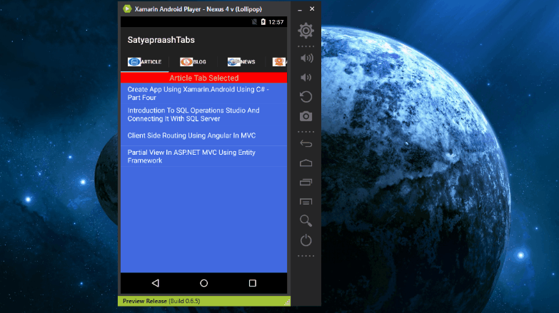 In this module, I have added some tabs and put some listviews on every tab page. Then, I set the icon of the app manually that makes it easy to identify the proper implementation of the app.