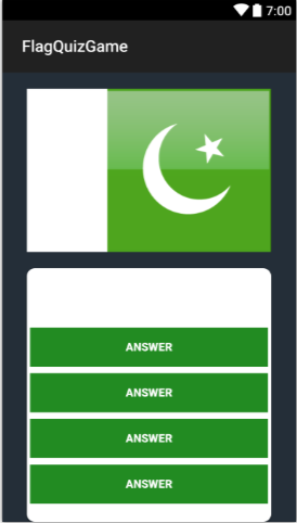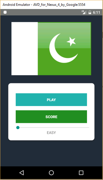 Finally, we have done our flag quiz game. Just rebuild and run the project. You will have a result like below.