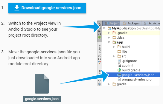 Now, download the google-services.json file and copy it to the app folder of your Android project.