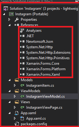 Add References now. For that, go to Solution Explorer >> Instagram(PCL)app >> right click on References >> Add References. Add the given references.