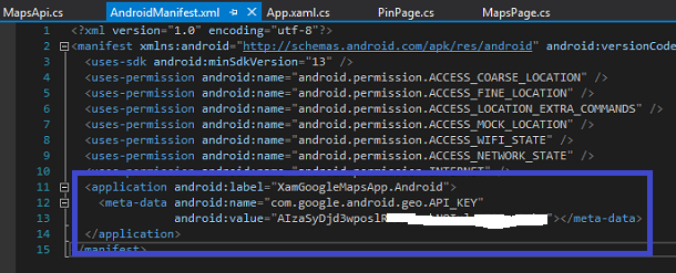For that, open Solution Explorer >> XamGoogleMapsApp.Android >> Properties >> Click open AndroidManifest.xml.