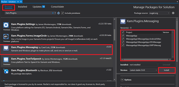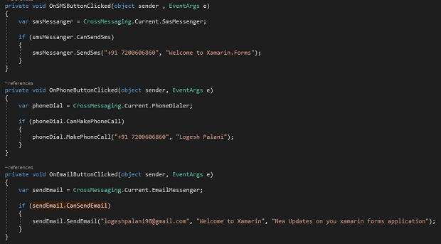 This article demonstrates how to make it possible to make a phone call, send an SMS, or send an e-mail using the default messaging applications in cross-platform API. These features are not listed by default in Xamarin.Forms. So, we need to install a plug-in for this.