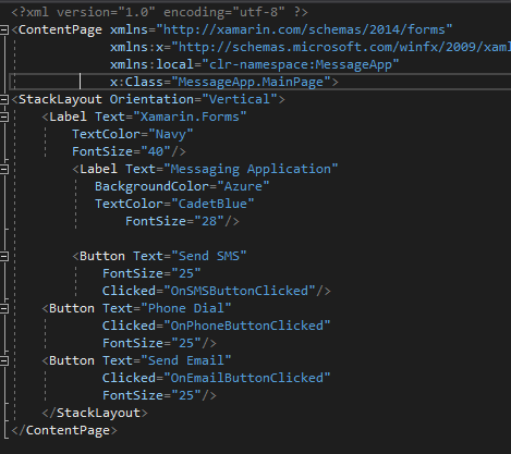 Afterwards, open Solution Explorer >>MessageApp(PCL)>>MainPage.xaml.cs and double-click to get its design view. Here is code for this page.
