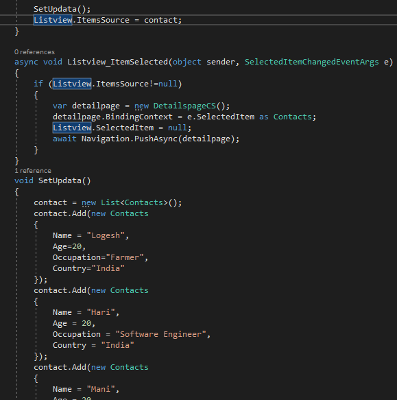 - detailpage.BindingContext = e.SelectedItem as Contacts;