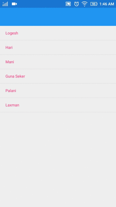 Next, insert the toolbar items of ListView to display page names and its clicked events to navigation between the pages.
