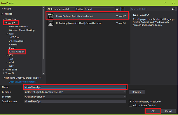 You can create Xamarin.Forms app by going to File >> New >> Visual C# >>Cross platform >>> Cross-platform App (Xamarin.Native or Xamarin.Forms), give the application name, and press OK.