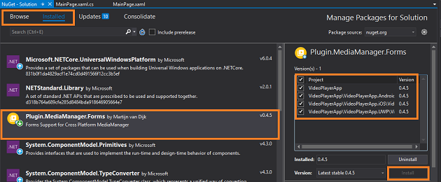 Add Universal Windows project. For that, open Solution Explorer >> VideoPlayerApp.UWP >> MainPage.xaml.cs and click open MainPage.xaml.cs.