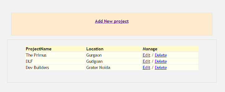 Now, create a View for the action, using right click on the controller's action and write the code as follows for the Index and AddEditProject respectively.