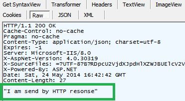 We are just returning string a in the message body and the output in Fiddler is something like this.