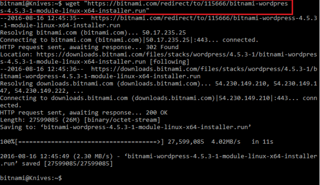 Now, you need to download WordPress LAMP Application module from by Bitnami. Copy the download link to your clipboard and write the command in the terminal and execute the command, mentioned below.