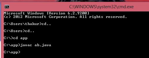 Step 2: Name it as "ab.java" and save the file on any location. I saved at "C:\app".