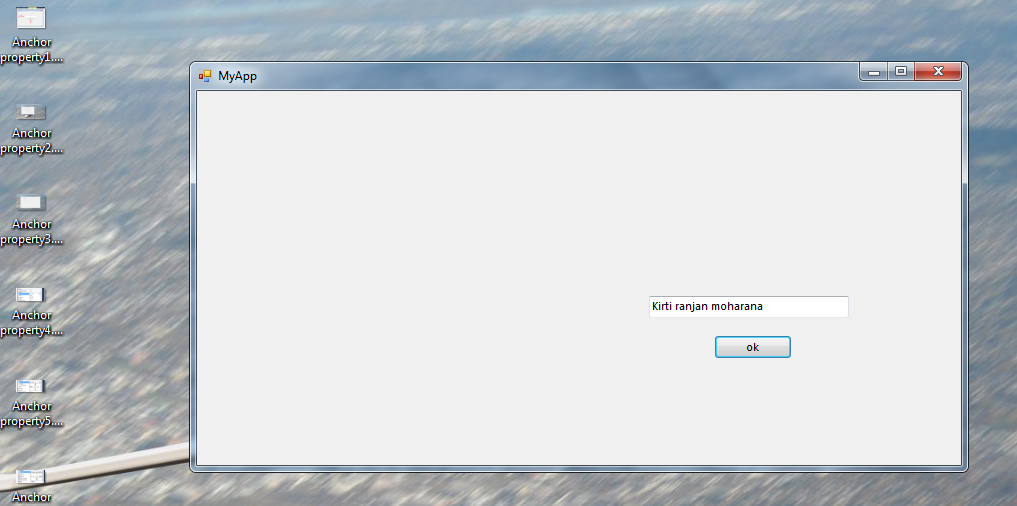 Anchor property window form is for the alignment of form components in the window. It allows us to position the window components (text box, button, grid, etc.) according to our requirement.