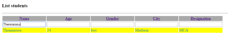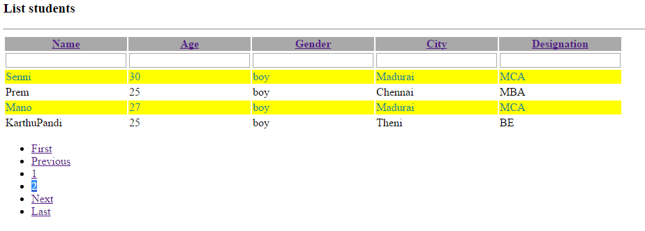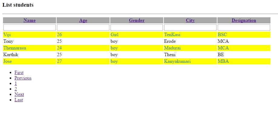 Finally, you have learned how to create a table via sorting, filtering and paging.