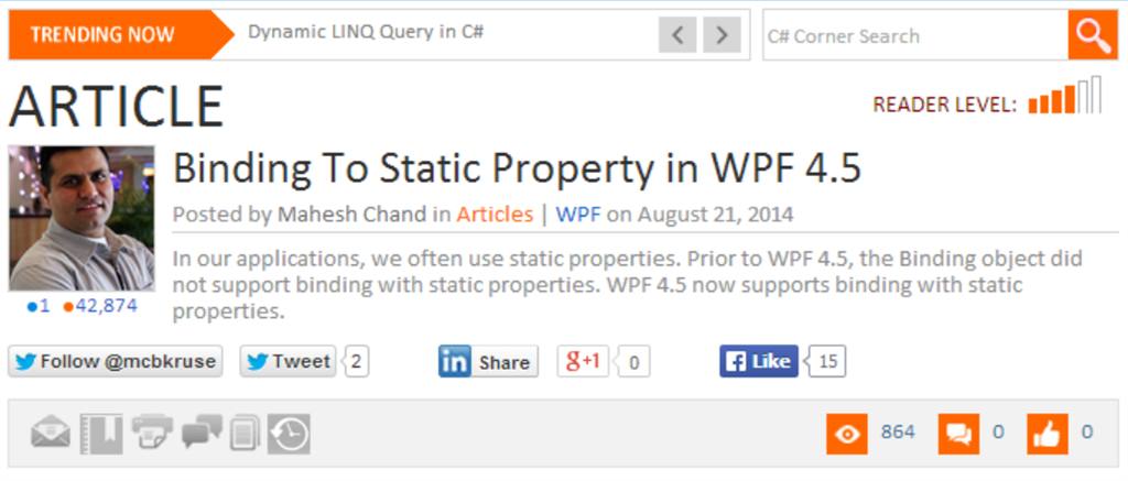 C# Corner Team just pushed a new code with some changes and one of the areas they have worked was the Article Header. The new Article Header looks like the following: